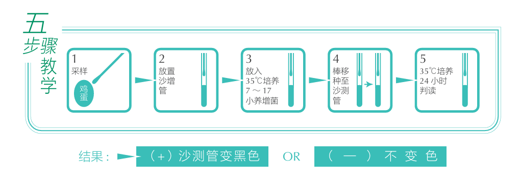 显色确认阶段:增菌培养完成后,取出沙增管中的棉拭棒,将其移插至 “沙测管” 的特殊培养基中,同样上下轻轻搅拌 2 次(确保增菌后的菌株充分接触沙测管培养基),搅拌后盖紧沙测管盖子,再次放入 35℃的一般培养箱中培养 24~48 小时。培养结束后观察沙测管内培养基的颜色变化:若培养基呈现黑色,表明检品中可能含有沙门氏菌(阳性结果);若培养基未出现黑色,则表明检品中未检测到沙门氏菌(阴性结果)。